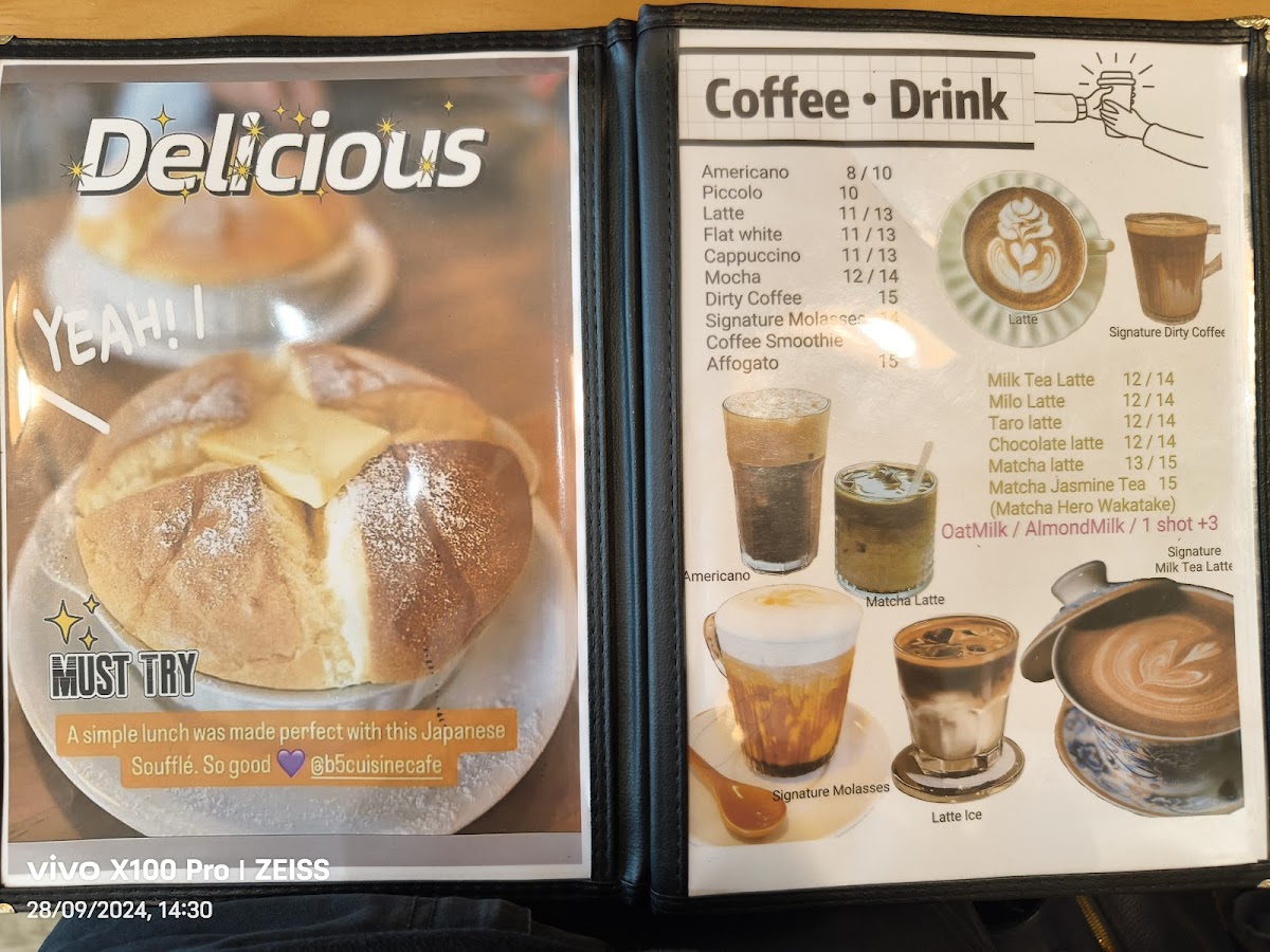 Welcome to B5 Cuisine Cafe, a cozy gem nestled in Kampung Batu, Kuala Lumpur. This cafe blends a warm atmosphere with a diverse menu that invites you to indulge in delightful culinary experiences. Highlighting the comfort of home-cooked meals, the Katsu Curry Rice, featuring homemade karaage paired with rich Japanese curry, is a must-try at just MYR 18.00. For pasta lovers, the Aglio Olio, available in spicy and non-spicy versions, offers a perfect harmony of garlic, olive oil, fresh broccoli, and cherry tomatoes. Customers rave about the friendly service and inviting ambiance, making it the ideal spot to unwind. Desserts like the Japanese Souffle and unique Oden Oden Cake promise to cap off your meal sweetly. With quick service and consistently delicious dishes, B5 Cuisine Cafe is more than just a meal; it’s an experience you'll want to revisit.